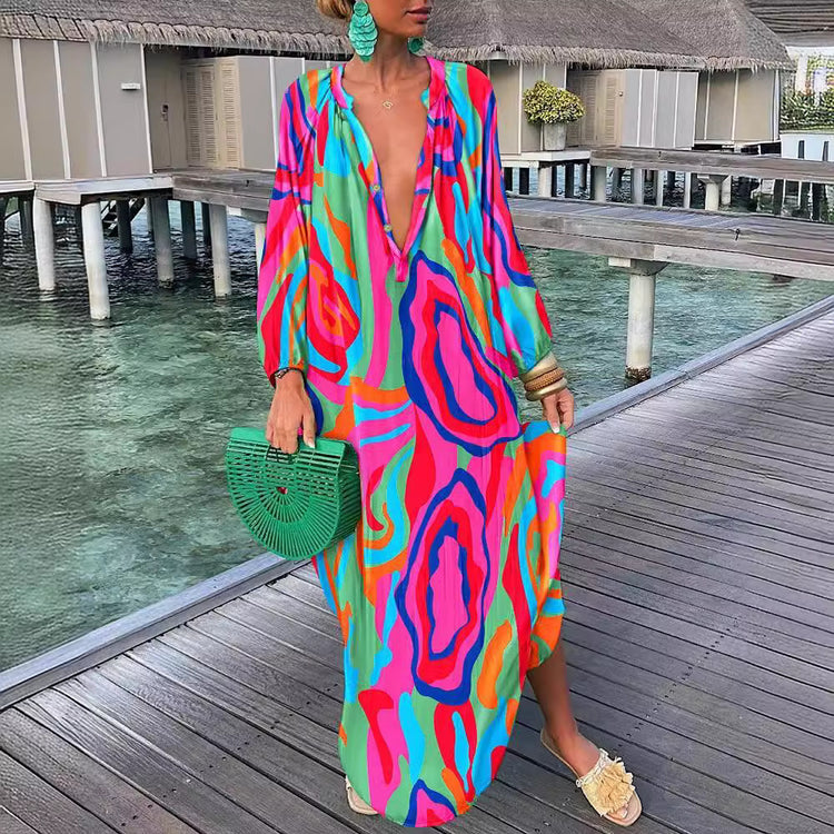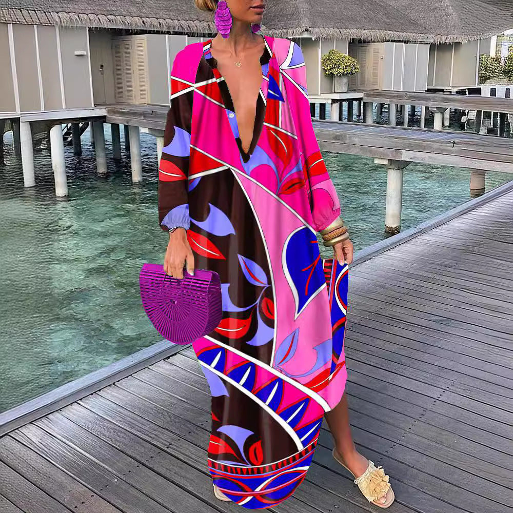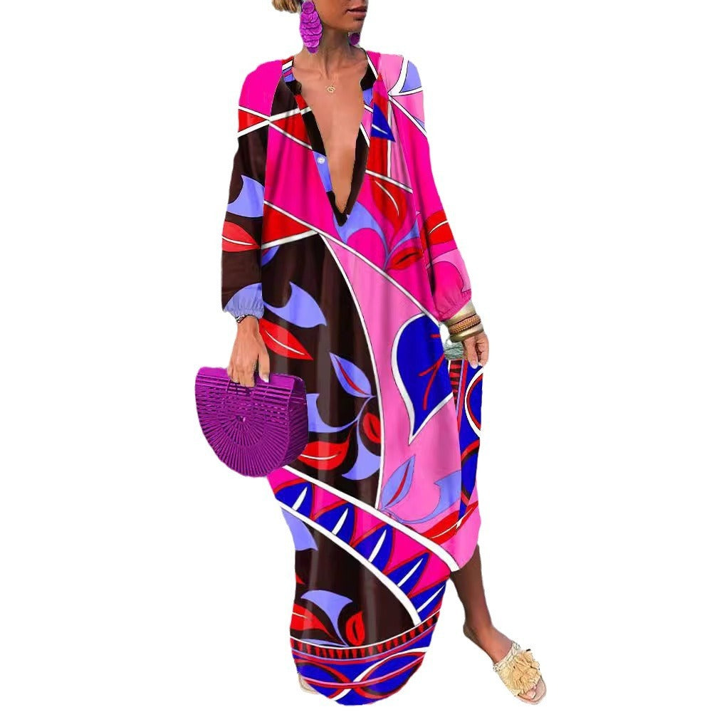 Top-selling Product Fashion Printed V-neck Dress