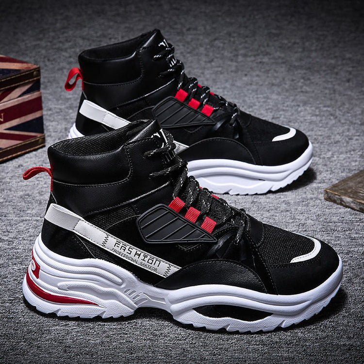Men's Lace-up Color-matching Sneakers Fashion High-top Height-increasing Casual Shoes