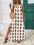 Women's Halter Tassel Lace-up Backless Slit Holiday Dress