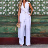 Women's Suit Fall Lapels Sleeveless Solid Color Two-piece Set